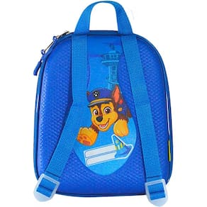 Confeccionada em EVA de alta qualidade e resistência, proporcionando um corpo rígido mas bastante flexível, processo patenteado e exclusivo. Não tem nada igual no mundo. Sistema de fechamento com zíper de qualidade. Seu interior possui um compartimento com uma malha elástica. Possui 2 alças de costas em nylon, com fivelas de ajuste em plástico, alça de mão em nylon na parte superior, superfície interna e externa impermeáveis, o que protege contra sujeiras e facilita a limpeza. Basta um pano úmido. Área de identificação onde pode ser colocado o nome da criança, o nome dos pais e telefones de contato.