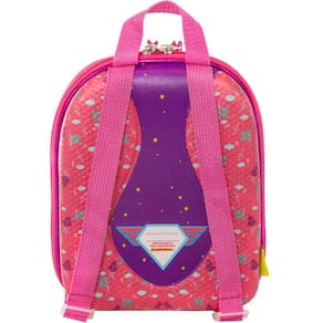 Confeccionada em EVA de alta qualidade e resistência, proporcionando um corpo rígido mas bastante flexível, forma 3D Termomoldada, processo patenteado e exclusivo. Não tem nada igual no mundo. Sistema de fechamento com zíper de qualidade em abrtura 360. Seu interior possui um compartimento com uma malha elástica. Possui 2 alças de costas em nylon, com fivelas de ajuste em plástico, alça de mão em nylon na parte superior, superfície interna e externa impermeáveis, o que protege contra sujeiras e facilita a impleza. Basta um pano úmido. Área de identificação onde pode ser colocado o nome da criança, o nome dos pais e telefones de contato.