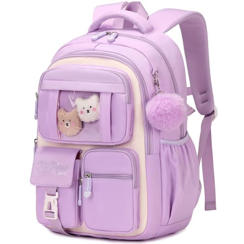 PIG PIG GIRL Mochila infantil para meninas, mochilas escolares para estudantes do ensino médio, bolsa de livros para escola primária, Roxo e bege, Tamanho único, Moderno - Design requintado: esta mochila para meninas com lindo boneco de urso e chaveiro de pompom combina a cor vibrante dos sonhos, que esses elementos adoráveis e românticos sempre inspiram a imaginação do seu filho e os mantêm com um humor alegre - Confortável e respirável: esta mochila escolar para meninas e meninos apresenta um design ergonômico, adotada com uma esponja respirável e espessa da alça de ombro acolchoada e painel traseiro, esta linda mochila deixa as meninas confortáveis de usar, relaxando os ombros e reduzindo a pressão, a faixa refletiva pode lembrar os veículos que passam para evitar - Dimensão espaçosa: 11,41 x 6,29 x 17,71 polegadas / 29 x 16 x 45 cm (L x P x A): 0,8 kg/1,76 lb; Capacidade: 21,8 L; Compartimento principal com capa para laptop que é espaçoso o suficiente para caber em laptop de 15 polegadas, iPad, fichários A4, livros de texto, almoço caixa, etc; O segundo O bolso serve para o básico da escola, caderno de anotações, estojo de lápis. Os bolsos superiores transparentes e os 3 pequenos bolsos no painel frontal podem guardar as coisas do dia a dia e acessá-las rapidamente, os bolsos laterais elásticos são para garrafa de água e guarda-chuva - Material durável: Feita de poliéster resistente à água, resistente a rasgos e espesso, esta mochila feminina com o acabamento requintado de costura resistente e zíperes suaves garantem o uso com um desempenho de longo prazo - Mochila ideal: recomendada para meninas de 6 a 14 anos de idade. Esta mochila escolar para meninas é ótima para o ensino fundamental, ao ar livre, compras, viagens. É um item essencial para a temporada de volta às aulas para sua filha em feriados e festivais.