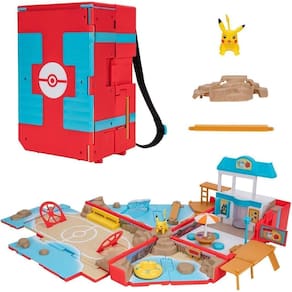 Se divirta, batalhe e pegue um sol no novo playset de batalha de Pokémon na praia Esse novo playset vai te transportar diretamente para uma arena de batalha na praia, com acessórios ricos em detalhes para deixar a sua brincadeira única, o conjunto também leva uma figura do Pikachu Apresentando detalhes autênticos, parecem ter saído diretamente da série animada. Se divirta e torne-se o maior treinador Pokémon do mundo, mostre suas habilidades e vença qualquer desafio