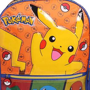 Ela conta com dois bolsos laterais ideais para garrafas, além de dois bolsos principais: um grande para guardar livros e cadernos, e outro menor para itens menores. Os zíperes duplos são um detalhe à parte, personalizados com o formato de Pokébolas, trazendo um toque especial e temático.