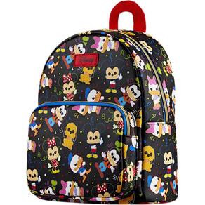 Mochila Pop Disney - Mickey And Friends - Loungefly Mini mochila Mickey E Friends. Este design vibrante apresenta Mickey Mouse, Minnie Mouse, Pato Donald, Margarida, Pateta e Pluto em um estilo de arte adorável inspirado no Funko Pop colecionáveis. Bolinhas multicoloridas e silhuetas do Mickey são salpicadas no fundo preto da bolsa, e detalhes rabiscados ajudam a destacar as emoções de cada personagem. Uma adição alegre a qualquer roupa, este acessório vibrante é perfeito para os fãs da Disney que procuram manter seus amigos favoritos por perto. O Loungefly Funko Pop A Mini Mochila Mickey E Friends é confeccionada em couro vegano poliuretano . A bolsa tem alças ajustáveis, ferragens douradas brilhantes e detalhes estampados.