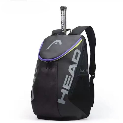 Feita de polyester e nailon de alta qualidade e grande capacidade, muito reforçada com tecnologia que protege seus equipamentos de altas temperaturas. Seus compartimentos fazem com que ela seja espaçosa e consiga carregar seus acessórios, roupas esportivas, água e calçados de forma separada. Tem alças reforçadas, e macias para que você possa carregá-la com segurança e conforto como mochila. Possui compartimento separado para calçados. O separador independente para raquete garante que sua raquete esteja segura e protegida, evitando danos durante o transporte.