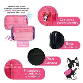 A mochila de costas Rebecca Bonbon RB27006 é a escolha perfeita para quem busca praticidade com muito estilo. Disponível em quatro cores incríveis - preto, rosa, lilás e verde -, é confeccionada em nylon de alta qualidade com matelassê localizado em formato de estrelas e corações, e traz um charme extra com cadarço acetinado logado e forro interno rosa listrado. O compartimento principal é amplo e conta com divisórias acolchoadas especiais para notebook e tablet, garantindo segurança e organização. Além disso, possui três compartimentos frontais com fechamento por zíper, sendo um deles com divisórias internas, além de bolsos laterais telados duplos ideais para garrafinhas. Para completar, acompanha chaveiro pompom de coração, mascote em 3D, medalhinha de metal, cadarço exclusivo e até uma cartela de adesivos personalizados. O conforto fica por conta das alças acolchoadas ajustáveis, e a praticidade é garantida pela alça de mão superior e alça carona para acoplar em malas. Um detalhe extra de segurança é o bolso antifurto localizado na parte traseira da mochila. Todos os puxadores de zíperes são personalizados. Dimensões aproximadas: 44x33x14cm. Marca: Não Informado Ean: 7795028459451