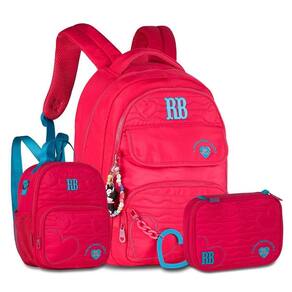 O Kit Escolar Rebecca Bonbon RB27015 é pura elegância, estilo e praticidade Ideal para acompanhar a rotina escolar com muito charme, o conjunto é composto pela Mochila de Costas RB27015, Lancheira RB27011 e Estojo RB27013, todos com design encantador e acabamento premium. A mochila RB27015 é confeccionada em material soft com matelassê de corações, trazendo uma aparência moderna e delicada. Conta com compartimento principal espaçoso, bolsos frontais com zíper, bolsos telados laterais, bolso antifurto traseiro e alça carona para acoplar em malas. As alças acolchoadas e ajustáveis garantem conforto, e os detalhes personalizados, como plaquinha de metal, cadarço acetinado, mascote 3D, chaveiro de miçangas e corrente com coração emborrachado, fazem toda a diferença. A lancheira RB27011 é o complemento ideal: possui amplo espaço interno com revestimento térmico, mantendo os alimentos sempre frescos. Conta com bolsinho frontal com fechamento por zíper, alça de mão superior, alça transversal ajustável e alça carona, perfeita para acoplar na mochila. O estojo RB27013 traz praticidade e muito charme, com amplo espaço interno e puxadores personalizados, ideal para armazenar lápis, canetas e pequenos acessórios com organização e estilo. Disponível nas cores: Preto, Rosa e Roxo. Dimensões aproximadas: Mochila: 44x33x14cm. Lancheira: 20x24x14cm. Estojo: 22x16x6cm. Marca: Não Informado