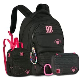 O Kit Escolar Rebecca Bonbon RB27015 é pura elegância, estilo e praticidade Ideal para acompanhar a rotina escolar com muito charme, o conjunto é composto pela Mochila de Costas RB27015, Lancheira RB27011 e Estojo RB27013, todos com design encantador e acabamento premium. A mochila RB27015 é confeccionada em material soft com matelassê de corações, trazendo uma aparência moderna e delicada. Conta com compartimento principal espaçoso, bolsos frontais com zíper, bolsos telados laterais, bolso antifurto traseiro e alça carona para acoplar em malas. As alças acolchoadas e ajustáveis garantem conforto, e os detalhes personalizados, como plaquinha de metal, cadarço acetinado, mascote 3D, chaveiro de miçangas e corrente com coração emborrachado, fazem toda a diferença. A lancheira RB27011 é o complemento ideal: possui amplo espaço interno com revestimento térmico, mantendo os alimentos sempre frescos. Conta com bolsinho frontal com fechamento por zíper, alça de mão superior, alça transversal ajustável e alça carona, perfeita para acoplar na mochila. O estojo RB27013 traz praticidade e muito charme, com amplo espaço interno e puxadores personalizados, ideal para armazenar lápis, canetas e pequenos acessórios com organização e estilo. Disponível nas cores: Preto, Rosa e Roxo. Dimensões aproximadas: Mochila: 44x33x14cm. Lancheira: 20x24x14cm. Estojo: 22x16x6cm. Marca: Não Informado Ean: 7795028699031