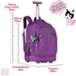 Mochila de Rodas Rebeca Bonbon Juvenil Escolar Meninas - Clio Style A Mochila Rebecca Bonbon é perfeita para meninas que buscam praticidade e estilo. Feita com materiais de alta qualidade, essa mochila de rodas é resistente e espaçosa, ideal para carregar livros, cadernos e outros itens escolares. Possui compartimentos bem organizados, alças convenientes e acolchoadas para maior conforto, além de um design moderno e delicado, com detalhes que encantam. Características Mochila: Alça de mão e costas Bolsos laterais telados Bolso interno para lápis e caneta Chaveiro pompom de coração Mascote em 3D Forro rosa logado Puxador personalizado Cadarço acetinado logado Medalinha de metal Zíper tratorado Proteção para asas e rodas Especificações Mochila: Marca: Clio Style Medidas Aproximadas Mochila A x L x P : 48cm x 35cm x 19cm Altura com a haste levantada: 98cm Aprox Peso: 2.022kg Capacidade: 31L Composição do produto: Poliéster Polegadas: 19 Compartimento para Notebook: 15 Conteúdo da Embalagem: Rb27000 - 1 Mochila de Rodas Rebeca Bonbon As cores podem variar entre as imagens mostradas acima e o produto. Imagens meramente ilustrativas. Todas as informações divulgadas são de responsabilidade exclusiva do fabricante. de 90 dias contra defeito de fabricação. Marca: Não Informado Ean: 7892020680002