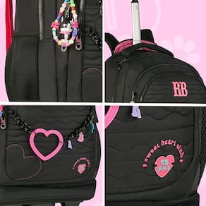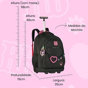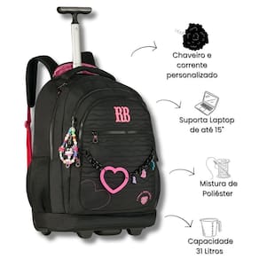 Mochila Rebecca Bonbon De Rodinhas Juvenil Escolar Mala Teen - Clio Style A Mochila Rebecca Bonbon é perfeita para meninas que buscam praticidade e estilo. Feita com materiais de alta qualidade, essa mochila de rodas é resistente e espaçosa, ideal para carregar livros, cadernos e outros itens escolares. Possui compartimentos bem organizados, alças convenientes e acolchoadas para maior conforto, além de um design moderno e delicado, com detalhes que encantam. Características Mochila: Alça de mão e costas Bolsos laterais telados Bolso interno para lápis e caneta Chaveiro e corrente personalizado Mascote em 3D Forro rosa logado Puxador personalizado Zíper tratorado Cadarço acetinado logado Placa de metal colorida Proteção para asas e rodas Especificações Mochila: Marca: Rebecca Bonbon Medidas Aproximadas Mochila A x L x P : 48cm x 35cm x 19cm Altura com a haste levantada: 98cm Aprox Peso: 2.022kg Aprox Capacidade: 31L Composição do produto: Poliéster Polegadas: 19 Compartimento para Notebook: 15 Conteúdo da Embalagem: Rb27009 - 1 Mochila de Rodas Rebeca Bonbon As cores podem variar entre as imagens mostradas acima e o produto. Imagens meramente ilustrativas. Todas as informações divulgadas são de responsabilidade exclusiva do fabricante. de 90 dias contra defeito de fabricação. Marca: Não Informado