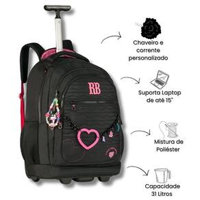 Mochila Rebecca Bonbon De Rodinhas Juvenil Escolar Mala Teen - Clio Style A Mochila Rebecca Bonbon é perfeita para meninas que buscam praticidade e estilo. Feita com materiais de alta qualidade, essa mochila de rodas é resistente e espaçosa, ideal para carregar livros, cadernos e outros itens escolares. Possui compartimentos bem organizados, alças convenientes e acolchoadas para maior conforto, além de um design moderno e delicado, com detalhes que encantam. Características Mochila: Alça de mão e costas Bolsos laterais telados Bolso interno para lápis e caneta Chaveiro e corrente personalizado Mascote em 3D Forro rosa logado Puxador personalizado Zíper tratorado Cadarço acetinado logado Placa de metal colorida Proteção para asas e rodas Especificações Mochila: Marca: Rebecca Bonbon Medidas Aproximadas Mochila A x L x P : 48cm x 35cm x 19cm Altura com a haste levantada: 98cm Aprox Peso: 2.022kg Aprox Capacidade: 31L Composição do produto: Poliéster Polegadas: 19 Compartimento para Notebook: 15 Conteúdo da Embalagem: Rb27009 - 1 Mochila de Rodas Rebeca Bonbon As cores podem variar entre as imagens mostradas acima e o produto. Imagens meramente ilustrativas. Todas as informações divulgadas são de responsabilidade exclusiva do fabricante. de 90 dias contra defeito de fabricação. Marca: Não Informado