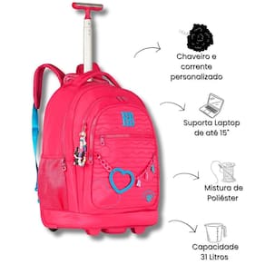 Mochila Rebecca Bonbon De Rodinhas Juvenil Escolar Mala Teen - Clio Style A Mochila Rebecca Bonbon é perfeita para meninas que buscam praticidade e estilo. Feita com materiais de alta qualidade, essa mochila de rodas é resistente e espaçosa, ideal para carregar livros, cadernos e outros itens escolares. Possui compartimentos bem organizados, alças convenientes e acolchoadas para maior conforto, além de um design moderno e delicado, com detalhes que encantam. Características Mochila: Alça de mão e costas Bolsos laterais telados Bolso interno para lápis e caneta Chaveiro e corrente personalizado Mascote em 3D Forro rosa logado Puxador personalizado Zíper tratorado Cadarço acetinado logado Placa de metal colorida Proteção para asas e rodas Especificações Mochila: Marca: Rebecca Bonbon Medidas Aproximadas Mochila A x L x P : 48cm x 35cm x 19cm Altura com a haste levantada: 98cm Aprox Peso: 2.022kg Aprox Capacidade: 31L Composição do produto: Poliéster Polegadas: 19 Compartimento para Notebook: 15 Conteúdo da Embalagem: Rb27009 - 1 Mochila de Rodas Rebeca Bonbon As cores podem variar entre as imagens mostradas acima e o produto. Imagens meramente ilustrativas. Todas as informações divulgadas são de responsabilidade exclusiva do fabricante. de 90 dias contra defeito de fabricação. Marca: Não Informado Ean: 7892111388893