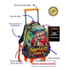 Conjunto Kit Escolar Dinossauro Rex Mochila Rodas Costas + Lancheira