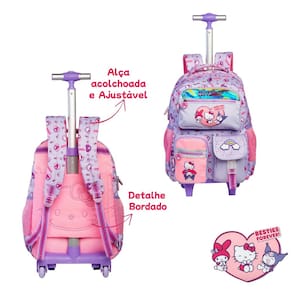 Conteúdo da Embalagem: 15430 - 1 Mochila de Rodas Hello Kitty and Friends 15434 - 1 Lancheira Hello Kitty and Friends 15437 - 1 Estojo Box Hello Kitty and Friends
