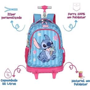 Mochila Rodas Stitch E Angel Disney Escolar Viagem Meninas - Luxcel A mochila perfeita para encantar as crianças no dia a dia escolar Com estampa divertida do personagem Stitch, da Disney, ela combina estilo e praticidade. Possui compartimento principal espaçoso para livros e cadernos, bolsos laterais ideais para garrafinhas e alças ajustáveis acolchoadas que garantem maior conforto. Fabricada em material resistente e fácil de limpar, é ideal para acompanhar a rotina escolar e também passeios. Características Mochila: - Pega de Transporte Manual - Bolso Lateral Telado Mesh com brilho - Bolso Frontal Utilitário com estampa - Zíper com Puxadores Personalizados - Etiqueta UP4YOU Emborrachada - Base Emborrachada - Chaveiro Personalizado Especificações Mochila: - Marca: Luxcel - Material: 100% Poliéster - Forro: Poliéster - Medidas Aprox. axlxp : 45cm x 34cm x 22cm - Tema: Stitch e Angel - Cor: Rosa e Pink - Capacidade Aprox. litros : 33 litros - Polegadas da mochila: 18 Conteúdo da Embalagem Mc50102sc - 1x Mochila de Rodas Stitch Disney As cores podem variar entre as imagens mostradas acima e o produto. Imagens meramente ilustrativas. Todas as informações divulgadas são de responsabilidade exclusiva do fabricante. de 90 dias contra defeito de fabricação Marca: Não Informado Ean: 7893153293855