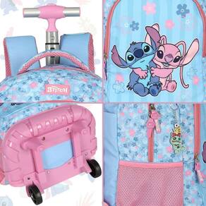 Mochila Rodas Stitch E Angel Meninas Disney Escolar Rosa