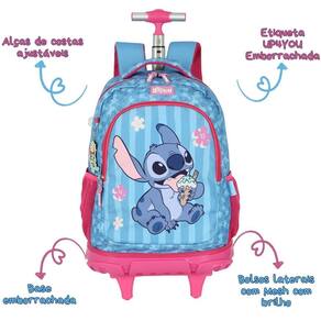 Mochila Rodas Stitch e Angel Meninas Disney Kids Escolar - Luxcel A mochila perfeita para encantar as crianças no dia a dia escolar Com estampa divertida do personagem Stitch, da Disney, ela combina estilo e praticidade. Possui compartimento principal espaçoso para livros e cadernos, bolsos laterais ideais para garrafinhas e alças ajustáveis acolchoadas que garantem maior conforto. Fabricada em material resistente e fácil de limpar, é ideal para acompanhar a rotina escolar e também passeios. Características Mochila: - Pega de Transporte Manual - Bolso Lateral Telado Mesh com brilho - Bolso Frontal Utilitário com estampa - Zíper com Puxadores Personalizados - Etiqueta UP4YOU Emborrachada - Base Emborrachada - Chaveiro Personalizado Especificações Mochila: - Marca: Luxcel - Material: 100% Poliéster - Forro: Poliéster - Medidas Aprox. axlxp : 45cm x 34cm x 18cm - Tema: Stitch e Angel - Cores: Rosa e Magenta - Capacidade Aprox. litros : 27 litros - Polegadas da mochila: 18 Conteúdo da Embalagem: Mc50102sc - 1x Mochila de Rodas Stitch Disney As cores podem variar entre as imagens mostradas acima e o produto. Imagens meramente ilustrativas. Todas as informações divulgadas são de responsabilidade exclusiva do fabricante. de 90 dias contra defeito de fabricação Marca: Não Informado Ean: 26926845716921