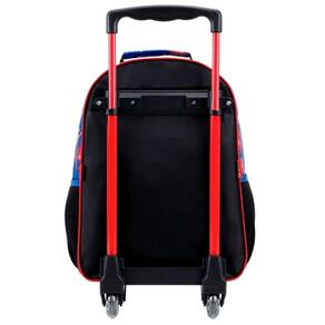 Em tamanho 14" , produzida em poliéster resistente e estampado. Painel frontal PVC patch - Compartimento principal amplo , 2 bolsos laterais mesh, zíper com puxadores personalizados, alça de mão em nylon com poliester e piping forrado. Carrinho em metal com travas.