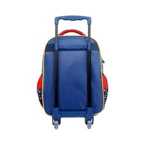 O zíper da mochila possui puxadores personalizados, o que facilita o manuseio, especialmente para as crianças. A alça de mão é feita em poliéster com mesh, o que torna o transporte mais confortável. E para facilitar ainda mais, essa mochila conta com um carrinho em metal com travas, permitindo que a criança a arraste ao invés de carregá-la nas costas.