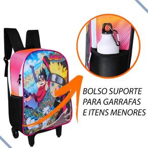 Boruto Uzumaki é um shinobi do clã Uzumaki de Konoha, assim como um descendente do clã Hyuga. Ele também é um membro do Time Konohamaru, junto a Sarada e Mitsuki. Desde que seu pai, Uzumaki, se tornou o Hokage, Boruto passou a ser ressentido com ele por nunca ter tempo o suficiente para ele e sua família, levando-o a agir de maneira revoltada. DESCRIÇÃO DA MOCHILA: - Rodinhas de silicone. - Alças de costas. - Alça de mão. - 02 bolsos laterais para a portação de garrafas ou itens menores de sua preferência. - 01 bolso frontal para a portação de cadernos, livros ou itens maiores de sua preferência. - Zíper duplo. DIMENSÕES APROXIMADAS DA MOCHILA: Altura: 40 Cm. Largura: 30 Cm. Profundidade: 15 Cm. Capacidade: 18 L. Altura da Haste em relação ao nível do solo: 80 Cm. DESCRIÇÃO DA LANCHEIRA: - Compartimento interno feito em material térmico para manter a temperatura dos alimentos. - Alças ajustáveis. - Zíper emborrachado. - Espaçosa. DIMENSÕES aproximadas DA LANCHEIRA: Altura: 20 Cm. Largura: 24 Cm. Profundidade: 11 Cm. Produto e Licenciado. Etiqueta da Luxcel. Marca: Não Informado