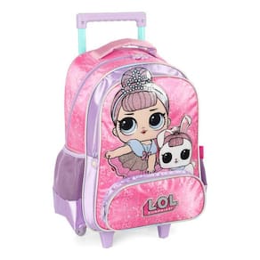 Mochila escolar com rodas: LOL Material: Poliéster resistente Ideal para transporte de livros e materiais escolares Puxador telescópico: Permite um transporte fácil e confortável Rodinhas: Para facilitar o deslocamento em qualquer superfície Estampa exclusiva: Design da famosa linha LOL, que agrada as crianças Compartimentos internos: Vários compartimentos para melhor organização Alças acolchoadas: Conforto no transporte nas costas