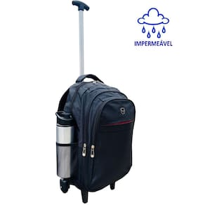 Adquira a sua mochila bezzter de rodinhas que foi desenvolvida para acomodar seus pertences com melhor aproveitamento do espaço interno, a mochila possui 3 compartimentos com zíper além de 2 bolsos laterais e compartimento interno para notebook, além de todo esse espaço a mochila é resistente a água, suportando chuvas até 20 minutos em chuvas leves , com rodinhas em gel resistentes e puxador em alumínio com altura regulável ideal para encarar a rotina do dia a dia. Com garantia e. Compartimento para notebook 15/16 pol