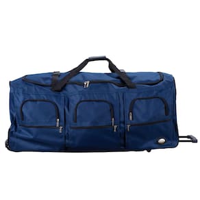 Rockland Bolsa esportiva com rodinhas, Azul marino, Bolsa esportiva com rodinhas - 101 x 43 x 40 cm - Rodas extragrandes - Zíper resistente - Bolso superior grande em forma de U, quatro bolsos frontais - Seis bolsos frontais - Bolso superior grande em forma de U com acesso ao zíper - Alça interna