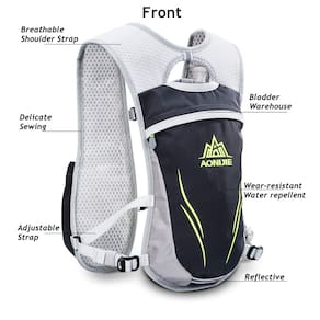 Tamanho da bolsa (C x A): 39 x 41 cm / 15,35 x 16,14 polegadas, Pacote de hidratação para corrida de apenas 250 g super leve. Colete de hidratação respirável para corrida masculino e feminino. Colete de corrida de bom volume de 5,5 L, apenas 250 g, torna sua corrida mais flexível e suave. Material macio e confortável, ajuste perfeito ao seu corpo, evitando que a mochila salte durante a corrida. Malha de ar nas costas e na ombreira, respirável e alivia o suor de forma eficaz. Bexiga de água de 2 L e 2 garrafas de água de 250 ml equipadas: (opcional) Bexiga de água - 2L. Grau alimentício, durável, construído para uma vida inteira de uso difícil. 2 garrafas de água - 250 ml. Os frascos de hidratação de corrida se encaixam facilmente em um depósito principal e não vazam. O melhor tamanho serve perfeitamente para corrida, ciclismo, caminhada e outras aventuras ao ar livre. Mochila de hidratação completa. Mantenha-se hidratado enquanto desfruta de seus esportes ao ar livre. - Leve para corrida: colete de corrida de 5,5 L, o peso da mochila é super leve de 250 g, reduzindo grande parte da carga durante a corrida. Quando se trata de corrida, quanto mais curto você planeja gastar na trilha, mais leve você precisará. Design para corrida de média ou longa distância. - Sistema de hidratação: compartimento de bexiga com sistema de suspensão, colete de corrida Aonijie compatível com bexiga de 2 L (não incluído); 2 bolsos frontais com laços seguros, facilitam a bebida e permanecem equilibrados quando você corre. - Compartimento de armazenamento múltiplo: projetado com 6 bolsos externos, você pode armazenar todos os pequenos itens como aspirador de pó, chaves, carteira, telefone e dinheiro, etc. Há um amplo espaço na frente para outra garrafa, carteira, chaves e outros itens pequenos. O armazenamento traseiro é grande o suficiente para garrafa reserva, farol, lustre etc. - Pacote de colete de ajuste confortável: alças de ombro e peito totalmente ajustáveis que garantem o ajuste perfeito, evitando que a mochila salte durante a corrida. Projetado com uma seção traseira acolchoada exclusiva para permitir o fluxo de ar entre as costas e a mochila. A malha macia nas costas e nas alças de ombro maximiza a respirabilidade. - Combina bem com você: bolsa em forma de colete de design ergonômico com alça de cintura ajustável e alça peitoral altamente elástica, dois tamanhos para sua opção. Esta mochila pode ser usada para mais do que correr e caminhar. É adequada para quase todas as atividades ao ar livre, como corrida, equitação, acampamento, maratona, etc.
