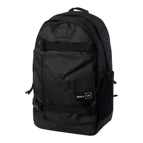 Mochila RVCA feita em tecido de poliéster reciclado, três compartimentos com zíper, compartimentos laterais de malha mesh, bolso interno para notebook, organizador interno, alças de segurança ajustáveis na frente, alças de ombro ajustáveis, alça de malha mesh na parte de cima, recorte traseiro em malha mesh com acolchoado, arte rvca no tecido pespontado e etiquetas rvca va na frente.