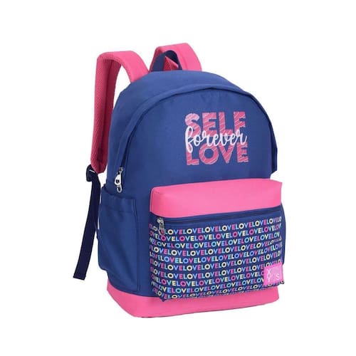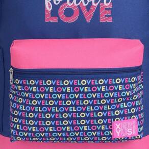 Especificações Técnicas - Marca: Xeryus. - Linha: Tween Self Love. - Material: Twill de Alta Densidade. - Cor: Azul Marinho e Rosa. - Dimensões Aproximadas: - Altura: 45 cm - Largura: 33 cm - Profundidade: 14 cm - Peso: 300g. - Fechamento: Zíper duplo com puxadores personalizados. - Compartimentos: - 1 bolso principal espaçoso. - 1 bolso anti-furto. - Bolsos laterais para garrafas e pequenos itens.