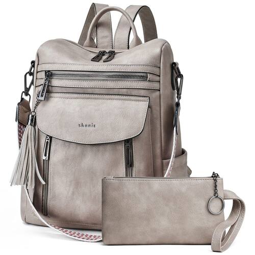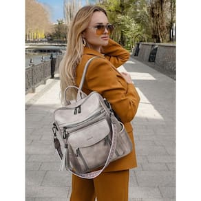 BOLSA DE MOCHILA SHRRIE PARA MULHERES; CARACTERÍSTICAS Material externo: couro PU de alta qualidade Tamanho: (C) 12,5 x (L) 12,5 x (A) 33 cm Peso: 900 g. Estrutura: 8 bolsos Mochila feminina leve para viagem com detalhes Design de mochila aberta superior Costura reforçada. Parte traseira da bolsa com costura reforçada para sua durabilidade. Material de alta qualidade. Todos os acessórios são feitos de liga metálica, anticorrosão, modernos e duráveis. Formas de transporte conversíveis A alça longa removível permite que a bolsa seja usada como bolsa de ombro ou mochila. - Material de alta qualidade – Mochila feminina feita de couro sintético macio e durável e forro de tecido, esta mochila de couro tem um fecho de zíper suave e durável e cada costura é reforçada para maior durabilidade. - Vários compartimentos – vários bolsos podem manter suas coisas bem organizadas. A mochila feminina tem 1 compartimento superior com fecho de zíper, 1 bolso interno com zíper, 2 bolsos internos, 3 bolsos frontais com zíper, 1 bolso com fivela magnética, 2 bolsos laterais e 1 bolso traseiro com zíper. - Bolsa de mochila no tamanho certo – o tamanho da mochila é de 12,5 x (L) 12,5 x (A) 33 cm, comporta confortavelmente um laptop de 14 polegadas ou menos, iPads de todos os tamanhos, revistas, guarda-chuvas, garrafas de água e outros itens pequenos. Você pode usá-la como uma mochila de uso diário ou como uma mochila de viagem. - Mochila multiuso – Existem três opções de transporte diferentes para várias ocasiões. Você pode usá-la como uma bolsa de ombro especial, uma mochila casual ou uma mochila elegante com alça superior. Ótima como uma bolsa de fim de semana, bolsa universitária, bolsa de viagem e bolsa de trabalho que pode guardar seus itens essenciais diários. - Presente para mulheres – Mochila de couro ideal para mulheres carregarem. Compras, viagens, encontros, caminhadas, parques de diversão, etc. Além disso, esta linda bolsa de ombro pode ser usada como presente de Natal para mulheres, presentes para mãe, presentes para avó, amante, amiga, filha e você mesmo para o dia das mães, Natal, Ação de Graças, aniversário, etc