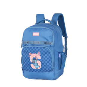 Destaques do Produto: Design exclusivo com estampa xadrez azul e bordado detalhado do Stitch Amplo espaço interno, ideal para cadernos, livros e materiais escolares Bolso frontal com zíper e divisões laterais em tela para garrafinhas Alças acolchoadas e ajustáveis, garantindo mais conforto Zíperes personalizados e chaveiro da Angel como toque especial Material resistente e de alta durabilidade, próprio para uso diário