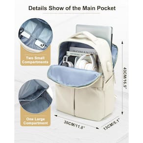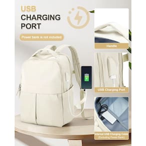 Mochila de laptop suratio para mulheres Mochila de ginástica Mochila casual Mochila de viagem para viajar de avião Mochila de trabalho para homens Mochila leve para computador Mochila para professores universitários bege - Material de boa qualidade: a mochila bege para laptop é feita principalmente de fibra de poliéster, que não é apenas leve, durável, fácil de limpar, mas também impermeável, não tem medo de pequenos respingos de água e pode proteger seus pertences. - Grande capacidade: mochila para laptop (L* W* H*) 30 cm* 13 cm* 43 cm/11,8"* 5,1"* 16,9". A mochila tem um bolso individual para laptop com uma divisória que pode acomodar um laptop de 14 polegadas; 1* bolso oculto com zíper na parte traseira que pode conter itens importantes, como cartões de identificação; 2* bolsos laterais que podem conter guarda-chuvas ou garrafas de água; 1* bolso com zíper na frente e 1* bolso principal de grande capacidade; o bolso principal pode conter revistas, roupas, etc., e 1* compartimento e 2* bolsos pequenos dentro do bolso principal. - Confortável e conveniente: as alças da mochila para laptop são equipadas com almofadas embutidas, de textura macia e as alças podem ser ajustadas livremente para tornar o ombro mais confortável; a mochila de viagem tem uma alça de bagagem na parte traseira, que pode ser fixada na alavanca da mala para facilitar o transporte durante a viagem. - Porta de carregamento: a mochila para laptop foi projetada com uma porta USB na lateral para conexão ao cabo de carregamento. Você pode conectar a alimentação móvel por meio desta porta USB para carregar seu celular ou outros produtos eletrônicos ao caminhar ou andar de bicicleta, proporcionando conveniência para viagens longas. - Cenários amplamente aplicáveis: as mochilas casuais Daypack são de tamanho adequado, leves e podem acomodar muitos itens. Pode ser usada como mochila universitária, mochila de viagem, mochila para computador e mochila de trabalho. Adequado para estudos universitários, viagens de negócios, passeios, atividades ao ar livre e uso diário, também é adequado como presente para amigos, familiares ou calouros da faculdade.