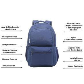 Mochila Feminina Masculina Nylon Amassadinho Tactel para Trabalho, Academia, Escolar, Ginástica, Camping, Lazer etc com visual moderno em Nylon Amassadinho Crinkle Tactel, excelente para uso no dia a dia e carregar seus objetos pessoais, levar em um passeio, na escola e trabalho. Possui 2 compartimentos +2 bolsos externos grandes +2 bolsos laterais com elástico. No compartimento principal possui um bom espaço para acomodar seus objetos e espaço para notebook, tablet, cadernos etc. Os bolsos externos são fechados com zíper com acesso rápido para carregar celular, chaves e pequenos objetos. Nas laterais contém 2 bolsinhos com elástico para levar acessórios como garrafas, latinhas e pequenos objetos. Todos os zíperes são em metal de fácil deslize. BENEFÍCIOS1. Atendimento pós venda para suprir todas as suas necessidades desde o momento da compra até a entrega do produto.2. Produto em Nylon Tactel com resistência e durabilidade, com ótimo custo x benefício.3. Produto com design moderno e atual.4. Garantia de Fábrica contra defeitos de fabricação.CARACTERÍSTICASConfeccionada em Nylon Tactel Amassadinho Crinkle resistente em cor lisa2 compartimentos grandes fechados com zíper1 espaço para notebook, tablet, caderno, livros, etc.2 bolsos externos frontais grandes fechado com zíper de acesso rápidoForro interno em cor lisa em nylon2 Bolsinhos Laterias Elásticos para pequenos objetosAlças de ombro anatômicas com ajuste / regulagem de tamanho1 Alça de MãoMEDIDAS EXTERNASAltura : 44 cmLargura: 29 cmProfundidade : 14 cmGARANTIA E QUALIDADEGarantia - 30 dias para defeitos de fabricaçãoQualidade - Nossos produtos são comercializados em parceria com grandes fábricas de bolsas e mochilas, que garante nossa qualidade dos produtos.