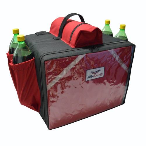 Mochila Térmica Pizza 45 Litros Piracapas ( 8 pedaços) Cor Disponível: Vermelha Mochila Térmica com Caixa de Isopor Alças e Zíper, bolsa para Entregador de Pizza , Lanches e etc... Bolsa Confeccionada em Nylon Plástico Frontal Transparente para Endereços e Panfletos Alças Ajustáveis com Fecho de Engate Rápido Possui Bolsos Laterais para Garrafas e Porta Documentos Fechamento Através de Zíper Possui Partes Refletivas e Alça Superior Pés de Apoio em Plástico Resistente MEDIDAS: Capacidade da Caixa de Isopor: 45 Litros Dimensão da caixa (LxAxP): 46x37x39cm Profundidade Interna Aproximada: 36cm