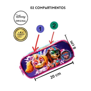 Dimensões da lancheira: 22 x 20 x 8cm altura x largura x profundidade . Dimensões do estojo: 15 x 21 x 6cm. Não perca tempo e adquira já a Kit Escola Patrulha Canina Skye Lancheira Térmica + Estojo!