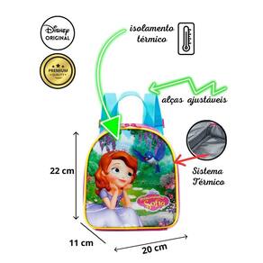 Com estampa estilizada da Princesinha Sofia, essa lancheira é um charme e vai encantar as crianças. Seus zíperes possuem puxadores personalizados, facilitando a abertura e o fechamento. Além disso, ela possui um tamanho compacto, com dimensões de 22 x 20 x 8 cm altura x largura x profundidade , ideal para levar na mochila.