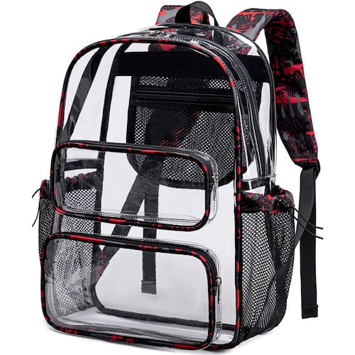 Mochila transparente, resistente, transparente, para escola, trabalho, esportes, viagens, festivais - Passar rapidamente pelas verificações de segurança: a mochila transparente permite que você passe rapidamente pela segurança do estádio ou aeroporto, o que torna a digitalização TSA muito mais fácil. É adequada para escola, festivais, eventos esportivos, jogos, shows, aeroportos e viagens; ótima para segurança no local de trabalho onde exige política de bolsas transparentes. - Grande capacidade e 6 bolsos: mochila transparente Medidas resistentes: 43 cm (A) x 32 cm (C) x 6 (W), bem feita com zíperes de qualidade. Mochila traseira transparente com 1 compartimento principal grande com zíper duplo, é grande o suficiente para muitos fichários, livros e laptop de 15,6 polegadas; 2 bolsos frontais com zíper para guardar lápis de cor, fita, bastão de cola, chaves, etc; 2 bolsos laterais: 1 Bolso de malha extensível para garrafa de água ou guarda-chuva, e outro bolso com zíper para itens pessoais. - Versátil na moda: adequada para mulheres, homens, meninas e meninos, é a escolha ideal para escola, trabalho, viagens, competições, piscinas, estádios, festivais de grande escala, eventos esportivos e shows vocais. Um presente ideal para filha, filho, neta, você mesmo, família, amigos e entes queridos! - Mochila resistente e transparente: nossa mochila transparente é feita de material de PVC à prova d'água extra grosso e resistente. Quando chove, você não precisa se preocupar com seus pertences ficarem molhados. O material plástico facilita e facilita a limpeza. As alças acolchoadas macias proporcionam uma experiência de uso confortável. - Serviço pós-venda: se você tiver algum problema de qualidade com sua mochila de plástico, e corrigiremos gratuitamente o mais rápido possível!