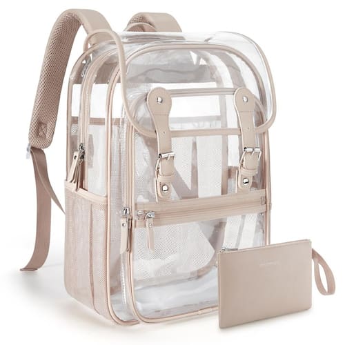 Mochila transparente mommore Bolsa pesada de PVC transparente com bolsa de lápis Mochila transparente de 2 compartimentos Mochila transparente — Conjunto de mochila transparente — 12,2" L × 4,7" L × 16,5” H. Mochila escolar grande com 2 compartimentos espaçosos e 1 bolso frontal com zíper para guardar seu material escolar. O bolso interno de malha mantém seus pertences organizados. Uma ótima adição é uma bolsa não transparente (5,5" x 8") perfeita como uma bolsa de lápis para seus artigos de papelaria ou itens pessoais. Passe rapidamente pela verificação de segurança com esta mochila transparente. - Bolsa de livros transparente com material atualizado - Feita especialmente de material de PVC mais espesso, de 0,5 a 0,8 mm, tornando-a resistente a temperaturas frias e ao amarelecimento. Os pontos de alça reforçados fornecem resistência adicional e evitam rasgos, uma mochila transparente e resistente. Além disso, a costura de PVC é conectada com acabamento em couro para melhorar a moda e a durabilidade da bolsa. - Design ergonômico - Equipado com duas alças acolchoadas em forma de S, feitas de tecido de couro PU. As alças de ombro são macias e respiráveis, confortáveis de transportar e reduzem a pressão no ombro. As alças de ombro ajustáveis são adequadas para adolescentes e adultos, garantindo um ajuste perfeito. - Presente perfeito — Procurando um presente elegante e funcional para seus filhos de volta às aulas ou para as necessidades diárias de trabalho de seu parceiro? Considere esta mochila transparente que também é perfeita para shows, eventos esportivos e outras viagens diárias. - Serviço pós-venda - o objetivo da mommore é oferecer aos clientes os melhores produtos e serviços. Apoiamos uma garantia de 12 meses. Se você tiver alguma dúvida ou sugestão, sinta-se à vontade para nos informar. Recomendado para crianças de 10 anos ou mais.