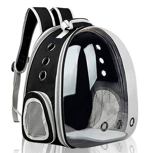 A mochila é totalmente transparente com uma visão panorâmica assim proporcionando para seu Gato ou Cachorro uma visão nítida. Dentro dá bolsa há um cinto de segurança para prender na coleira, trazendo maior proteção para seu bichinho de estimação. Também possui vários furos à sua volta para que a seu mascote fique sempre bem ventilada e cheire todos os cheiros que o rodeiam.