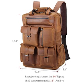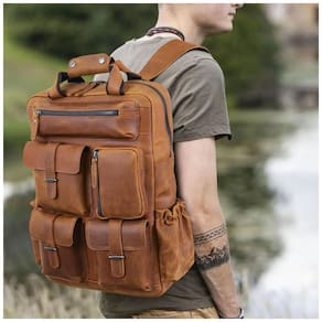 Mochila Unissex de Couro para Laptop, POLARE , Marrom