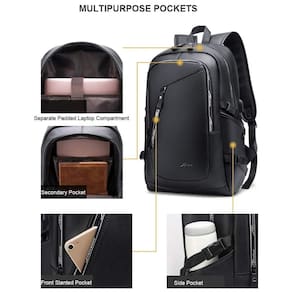 COMFY STURDY Design de fluxo de ar confortável com estofamento ventilado espesso, mas macio, oferece suporte máximo para as costas. Alças de ombro respiráveis e ajustáveis aliviam o desconforto do ombro. Alça superior prática para um longo tempo de transporte. PROJETO DE PORTA USB E FONE DE OUVIDO A PORTA USB embutida é conveniente para carregar seu telefone pelo banco de energia conectado o BANCO DE ENERGIA não está incluído. E o fone de ouvido libera suas mãos ao entretenimento de áudios, música, etc. APLICAÇÕES Esta mochila de couro PU é elegante e clássica. Servir bem como bolsa de trabalho de escritório , bolsa de carregamento USB fina, perfeita para viagens de negócios, escapadelas de fim de semana, compras e atividades ao ar livre na vida diária. Bom presente para o estudante grande do ensino médio da faculdade para meninos, meninas, adolescentes, adultos. MATERIA DURÁVEL de couro macio e provavel e tecido de metal de qualidade especialmente de náilon, cinco características à água especialmente tratadas Marca: Não Informado