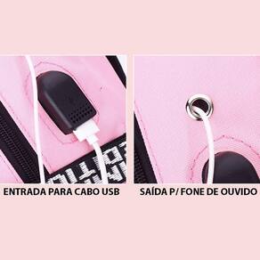 Mochila Kawaii Korean USB e Saída Para Fones Top Teen