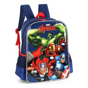 Fabricada em poliéster e pvc , possui alças de costas acolchoadas com regulagens, alça de mão, bolsos laterais em redes elásticas, 2 bolsos superiores com fechamento em zíper de metal personalizados, etiqueta personalizada em bolso plástico na parte de trás e acolchoado na parte de trás da mochila para as costas da criança.