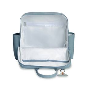 Conta com alças ajustáveis para uso nas costas, alça de mão e alça para prender na mala, sendo perfeita para viagens e passeios. Acompanha trocador portátil e chaveiro exclusivo, facilitando ainda mais a rotina com o bebê.