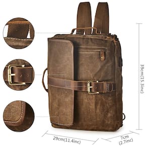 Tela encerada a óleo e couro Cavalo. Importado Forro de algodão Zíper Material lona encerada à prova dágua e acabamento de couro de cavalo louco vintage, lona encerada Características Fibra natural nossa lona é feita de algodão puro, trabalhada com um tecido de malha dupla apertado. Em seguida, lavamos com pedra, o que dá à superfície uma superfície única e inspirada no vintage. Durável A tela de alta densidade que usamos é forte, resistente, resistente a arranhões e mantém sua cor bem. Resistente à água Após o tratamento de enceramento, a superfície da tela fica com características de resistência à água. Mochila 4 em 1 Messenger com porta de carregamento USB, bolso com zíper à prova de roubo, gancho de alta carga anti derramamento. Estrutura Design de grande capacidade, ideal para material de escritório. 2 bolsos externos escondidos sob a capa, 1 bolso atrás da bolsa, Vários bolsos abertos dentro. Dimensão 36 L x 28 A x 8 W centímetros Peso 1 kg Aparência vintage design exclusivo, estilo de negócios e lazer. Aplicações negócios, escola, esportes, viagens, caminhadas e escalada Marca: Não Informado