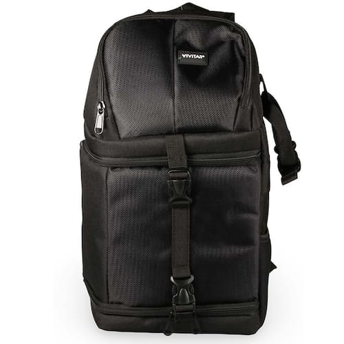 A mochila DKS 15 da Vivitar é projetada para transportar com segurança seus equipamentos fotográficos. O design da bolsa permite uma rotação rápida das costas para a frente do corpo, proporcionando acesso rápido e fácil aos seus equipamentos. Divisórias internas acolchoadas e ajustáveis ??no compartimento principal permitem personalização.