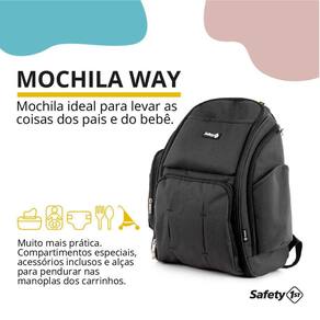 Explorar o mundo com o seu bebê é uma experiência incrível, mas estar fora de casa significa não ter à mão tudo o que temos quando estamos em nosso lar. Por isso, a Mochila Way da Safety 1st é o acessório ideal para garantir que tudo esteja no devido lugar, até mesmo as roupas molhadas! Com várias divisões e recursos inteligentes, essa mochila foi projetada para manter organizados e limpos todos os itens essenciais para um passeio tranquilo com o bebê.
