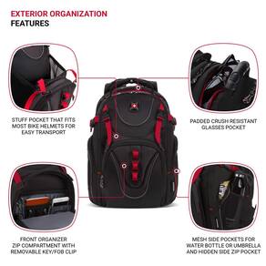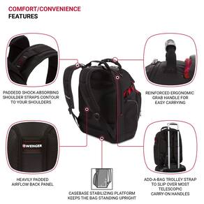 Wenger Bagagem Maxxum, Preto/vermelho, Wenger Mochila para laptop Maxxum de 16 polegadas - Mochila técnica: a mochila para laptop Maxxum de 16 polegadas combina design inovador e funcionalidade para manter sua tecnologia segura e protegida durante o dia - Armazenamento seguro: esta mochila de laptop inovadora para homens e mulheres possui um compartimento acolchoado triplo protegido para um laptop ou tablet de 16 polegadas - Organização sem esforço: esta bolsa de computador inclui um organizador essencial que mantém cabos de alimentação, carregadores e cartões de visita limpos e acessíveis - Vários bolsos: uma bolsa de transporte desliza sobre alças de bagagem com rodas, um bolso rápido permite fácil acesso aos itens essenciais e bolsos laterais de malha acomodam garrafas de água e guarda-chuvas - Confortável de transportar: a bolsa para laptop Legacy inclui alças de ombro que absorvem impactos, uma alça ergonômica reforçada, acolchoamento traseiro de fluxo de ar e uma plataforma estabilizadora CaseBase