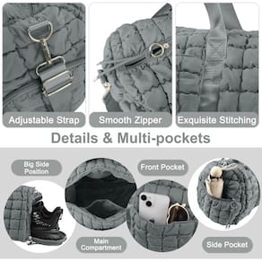 Bolsa de viagem acolchoada de ginástica para mulheres, bolsa grande de fim de semana com compartimento, bolsa organizadora de viagem para exercícios noturnos, bolsa de viagem de avião - Macia e leve: a superfície da bolsa de viagem é feita de material de nylon grosso e durável, e o interior é preenchido com algodão, que é leve e garante que você possa desfrutar de uma experiência de mochila confortável em qualquer ocasião. Zíperes resistentes e costura garantem sua durabilidade. Carregue todos os seus itens essenciais com facilidade, exibindo com confiança seu estilo único e encontre um equilíbrio entre moda e funcionalidade. - Design com vários bolsos: bolso principal grande + bolso frontal + pequeno bolso interno com zíper + dois bolsos internos de malha + bolsos laterais + bolso lateral interno grande. Esta bolsa de viagem grande oferece muito espaço e vários compartimentos para manter seus pertences pessoais organizados. Todo esse espaço de armazenamento está disponível para suas viagens curtas de fim de semana. Os bolsos pequenos podem ser utilizados para organizar seus pequenos itens diários, o que é uma boa companhia para viagens aconchegantes. - Fácil de viajar: a bolsa dobrável atende à maioria dos requisitos internacionais de bagagem de mão. Como um item pessoal para guardar no compartimento superior durante um voo e cabe perfeitamente sob o assento do avião. Além disso, desliza facilmente na alça da sua bagagem e permanece no lugar. Facilita a viagem ao aeroporto. Esta é uma bolsa de embarque ideal para o fim de semana que pode ser usada como bolsa de negócios e também como bolsa de viagem pessoal. - Multifuncional: a bolsa de viagem acolchoada está equipada com uma alça de ombro ajustável e removível, você pode carregá-la de mão ou transversal de acordo com suas necessidades, com esta bolsa elegante multifuncional, você pode se organizar e preparar. Perfeita para esportes, viagens de fim de semana, fitness, viagens, viagens de negócios e pernoites. - Multiuso: a bolsa de viagem pode ser usada como bolsa de negócios, bolsa de fim de semana, bolsa noturna, bolsa de mão, bolsa de acampamento, bolsa esportiva, bolsa de ginástica e assim por diante, é adequada para todos os tipos de ocasiões, e muitas cores podem ser escolhidas, modernas e versáteis. Também é um ótimo presente para sua família e amigos no aniversário, Ação de Graças ou Natal.
