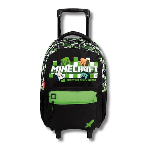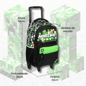 Mochilete Minecraft Creeper Infantil Escolar Passeio - Sestini É hora de embarcar em um universo cheio de boas aventuras com a mochila de rodinhas oficial do Minecraft Os personagens mais famosos do jogo que dominou o mundo estão estampados em todo o tecido. Além do compartimento espaçoso para guardar os cadernos, livros e estojo, o bolso frontal é ideal para levar outros materiais menores. Enquanto isso, as rodinhas permitem uma rotina mais leve e sem esforço para os pequenos exploradores. Características: - Mochila com haste de transporte e carrinho - Bolsos laterais telados - Confeccionada em poliéster - Detalhes em alto relevo e temáticos - Fecho em zíper personalizado - Apoio de descanso em PU - Rodinhas em TPU resistente Especificações: - Marca: Sestini - Material: 100% Poliéster - Tamanho aprox. axlxp : 50cm x 32cm x 20cm - Volume litros : 18L - Peso aprox. gramas : 1000gr Conteúdo da Embalagem: 66288-00 - 1 Mochila de Rodas Minecraft Creeper As cores podem variar entre as imagens mostradas acima e o produto. Imagens meramente ilustrativas. Todas as informações divulgadas são de responsabilidade exclusiva do fabricante. de 90 dias contra defeito de fabricação. Marca: Não Informado