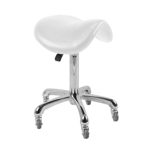 Mocho Sela Odontológico e Estética EstekPerfeita ergonomia para o profissional que trabalha na posição à frente de seu cliente, ou seja, na posição de execução de tratamento. Possui ajuste de altura à gás e rodízios de alta resistência. Sua estrutura cromada garante durabilidade, requinte e beleza.Informações Técnicas:Cor: Branco e PretoAltura min.: 54cm Altura máx.: 74cmDimensão do assento: 43x36cmDiâmetro na região das rodas: 46 cmPeso: 5,230 KgGarantia: 12 meses